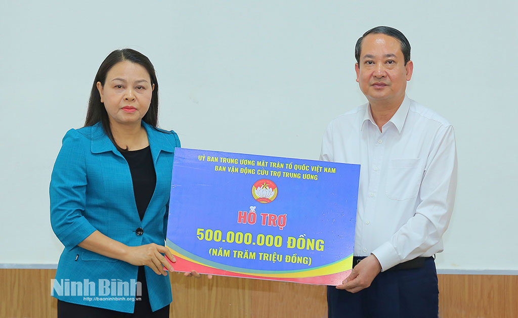 Trao hỗ trợ của Lãnh đạo Đảng, Nhà nước, MTTQ Việt Nam cho nhân dân tỉnh Ninh Bình khắc phục hậu quả bão số 10